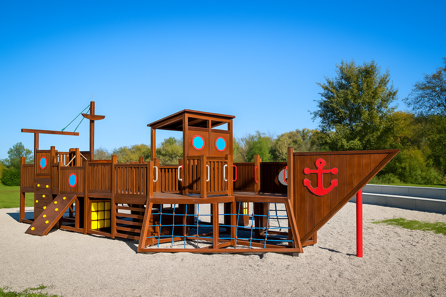 Arnavutluk’ta hayata geçirilen SG-14 Ahşap Gemi Oyun Parkı, deniz temalı tasarımıyla çocuklara hayal güçlerini özgürce kullanabilecekleri benzersiz bir oyun alanı sunar. Gemiyi andıran estetik formu, halat tırmanma alanları, kaydıraklar, oyun panoları ve gözetleme noktalarıyla çocukların fiziksel ve zihinsel gelişimini destekler. Bu model, özellikle sahil parkları, okul bahçeleri, kampüs alanları ve çocuk dostu sosyal tesisler için ideal bir çözümdür.